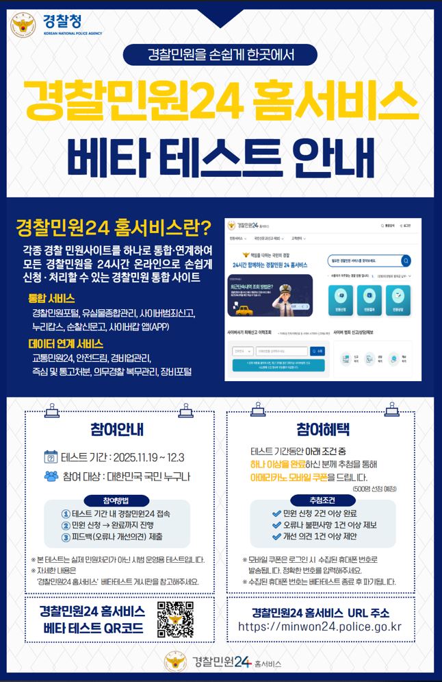 경찰민원24홈서비스 베타 테스트 안내